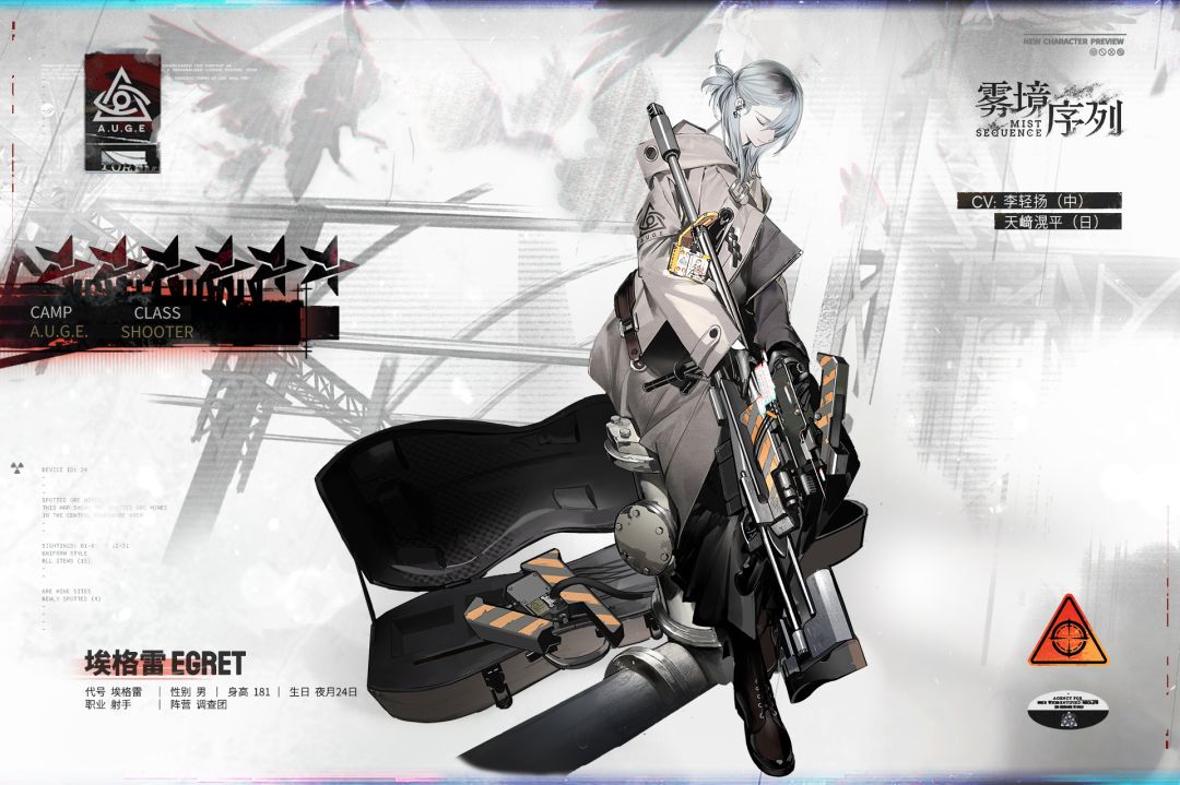 #雾境序列[超话]##雾境序列##浮沫危机# “我的病吗,是年轻时落下的顽疾。咳、咳,没事,我还撑得住,在达成心愿之前……一定能撑住。” █ 调查员简介 █ >>>基础资料 【代号】埃格雷 【职业】射手 【性别】男 【生日】夜月24日 【阵营】调查团 【CV】李轻扬(中配)/天﨑滉平(日配) >>>档案资料 【基础记录】 调查员埃格雷,系经由民间招募加入调查团。 该调查员接受过专业战斗训练,拥有丰