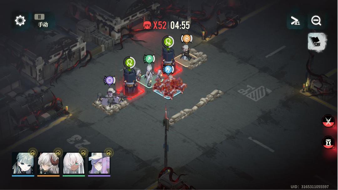 我的打法是用风信子的速度和技能到处拉扯,吸引仇恨。其余2个远程和治疗站位不动。速度选择1,带治疗技能。 图一是站位 图二是开局火焰的铺设 图三是风信子第二轮技能火焰集中铺在中间两条路 图四是第三轮火焰技能 图五是收尾 剩下的是练度图 这张图开始打的时候我也是自动,发现不能过,试了几次。选择了一个合适自己的打法,可以注意到我的荆棘是助战的,我没有金色的狙击。等级100级,科技基本算是点满。所以不代表