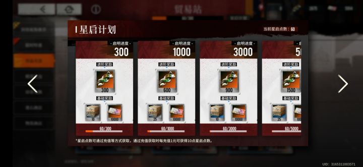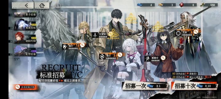 300一抽,一关50新手池限时池(轮替的普池)普池活动池双发,(一来就有6个池子可以选择呢,你想抽谁呢?)80保底,5星没有保底20抽必定一个只限一次(角色分6星5星4星3星哇,好明确哦),打主线给普池卷,邮箱十五抽普池卷(还有五抽还要填问卷才能拿)可持续资源全游属于最低的那一档(抽卡是最贵的那一档),礼包限时礼包减50%98元10抽,月礼包减35%只有10抽活动卷加4抽普池卷也就是说不打折19