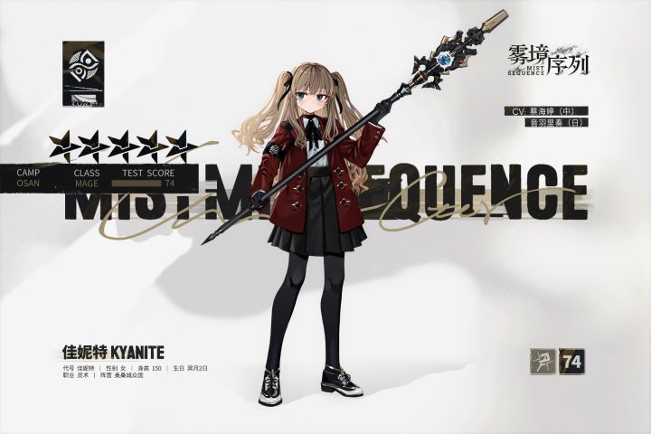 “看到了吧,各位!这是我佳妮特,不依赖任何人,只靠自己赢来的胜利!”█ 调查员简介 █>>>基础资料【代号】佳妮特【职业】灵术【性别】女【生日】冥月2日【阵营】奥桑城众国【CV】蔡海婷(中配)/音羽里奏(日配)>>>档案资料【基础记录】特派调查员佳妮特,系蜂花城印术学院学生。该调查员擅长施展印术控制温度及驱散各类负面影响,现分配至作战部防卫队工作。“雾语者测试”评分:74