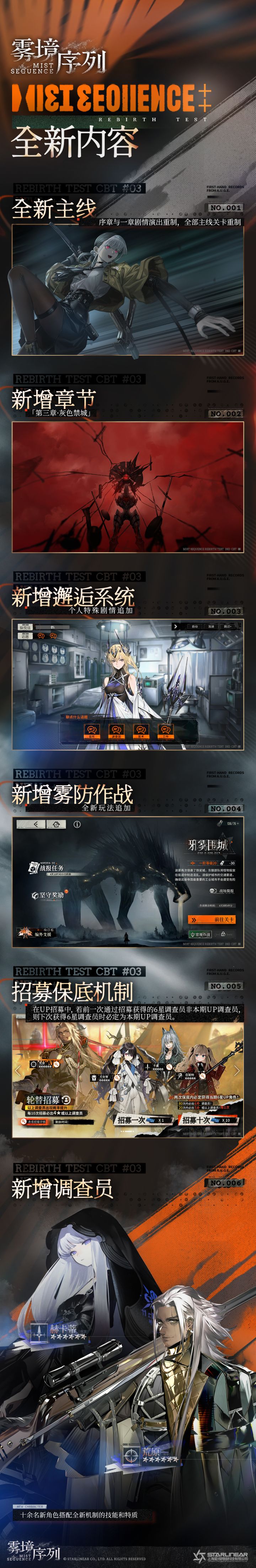 亲爱的调查官:《雾境序列》“重生测试”将于2023年7月26日11:00正式开启。在登上熟悉又陌生的“极羽号”空艇、和调查员们共同对抗未知的迷雾前,调查团特意为您制作了本次“重生测试”版本内容前瞻手册,点击下方长图即可完成查收!※ 目前游戏仍处于研发阶段,测试内容不代表最终游戏品质。 ____________▶▶立即预约◀◀《雾境序列》复古未来幻想×即时战术SRPG ——以理智为灯,驱