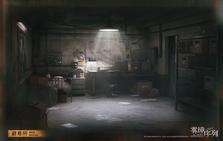 红麦战争后,迷雾成为无形的高墙隔绝了帝国与联邦的联系。为了防范迷雾随时侵扰来犯,斐列庭帝国在各地修建了大量雾防避难所。除了必要的驱雾设备和物资,避难所只会配备广播收听工具,而缺少主动通讯功能。通常没人想要放弃壁炉和阳台躲进这里,直到雾灾爆发,古物出现在他们的家门口……