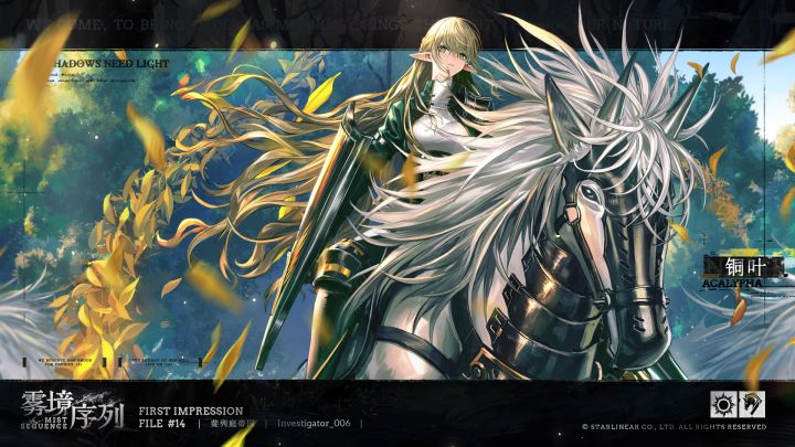 “尽快做好准备吧,调查官......祝你目之所及,前路长明。”CAST(以下排名不分先后)阿格妮斯 中文CV:多多 丨 日语CV:東山奈央荆棘 中文CV:秦文静 丨 日语CV:伊藤美来藤萝 中文CV:菊花花 丨 日语CV:黒沢ともよ德拉克 中文CV :萧翟 丨 日语CV :古川慎▽▽《雾境序列》日语配音试听影像▽▽▽▽《雾境序列》中文配音试听影像▽▽