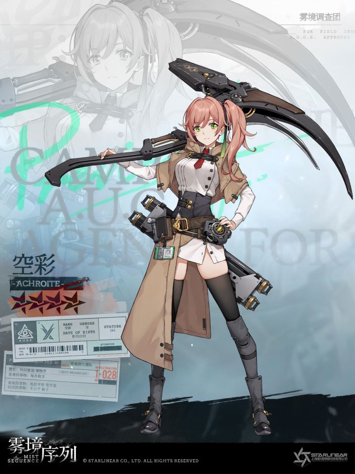 所属:雾境调查团“调查官,今天的工作清单我整理好了。我们快点完成吧,下班之后我还要出门打工。”_________________“空彩是个好孩子,勤快、听话。”几乎所有和她相处的年长同事都会这么说,可在这年头,当好孩子是有代价的。空彩正在奥桑进修课程,而她清贫的家境只能令她早早独立,勤工俭学。所以在同龄人眼中,空彩这个穷酸优等生就有些拘谨刻板,斤斤计较了。某种程度上,这场雾灾给了她更多施展拳