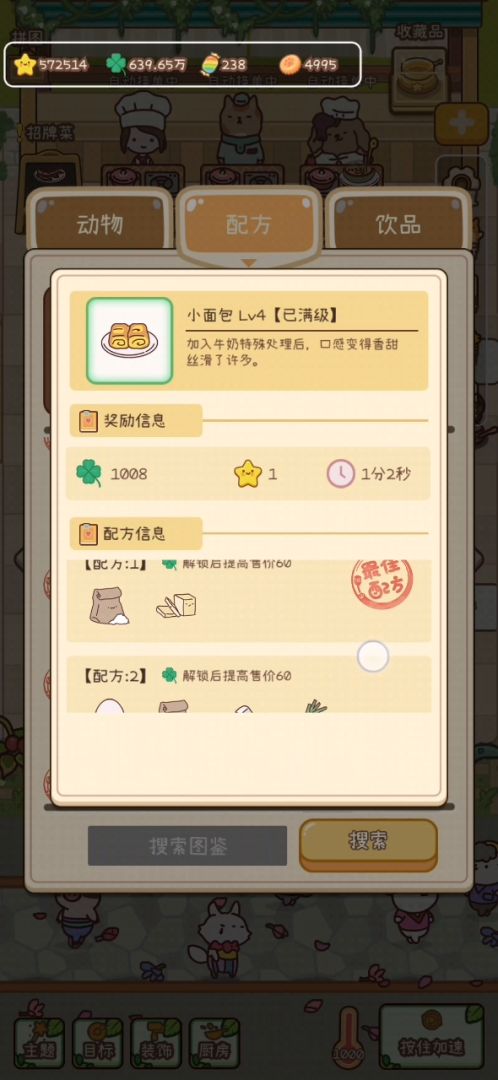 各位护林员大大们好呀! 关于排队时候,顾客被隐藏起来的BUG目前已经修复,各位大大们只要重启热更即可解决。 此次5.4.21版本的更新内容如下: 1、修复了排队BUG,以后小伙伴们排队再也不会被隐藏了。 2、呗爷在解锁了全部菜谱之后就不会再出现了。 3、熊大厨自动接单,每自动接单一会儿就要休息一下。 4、优化新手引导和其他一些游戏表现。 全新兑换码【发财致富全靠维护】,内含彩虹糖*500。 希望各