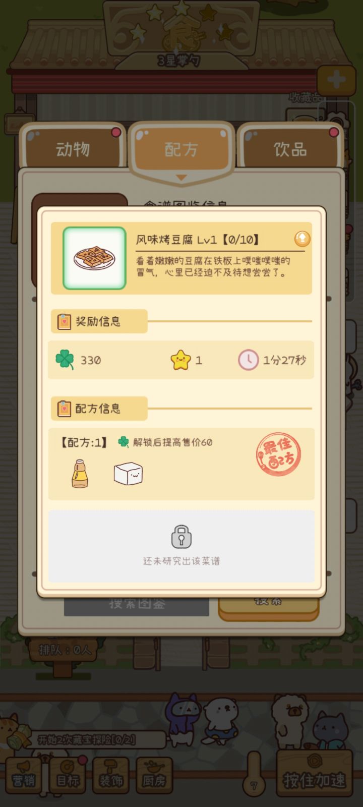这游戏我最喜欢的部分就是研发食谱了,在不断更换搭配的食物研究出来后的成就感太棒了,希望大家也不要单单抄作业哦,自己也体会一下快乐,喜欢的话插眼吧✧\ ٩(눈౪눈)و //✧加油(菜品的其他研究食谱可以看我下一个帖子)研发技巧1.普通的食谱用2~3个食材,稀有3~4个以此类推2.先打开图鉴看一下名字确定主食材,比如白灼基围虾肯定有虾,而后用时光厨房开始试配方,在大厨后面出现带问号的菜品后点