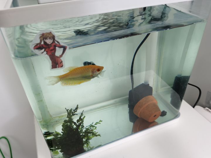 大家好,我是贝尔。周一的时候我偷拍了主策的工位环境,得到了某些玩家(toukuikuang)的肯定,于是为了得到更多的肯定,今天溜达一圈寻找创作灵感,然后我发现——我们项目组的鱼友好像有点多。-----------------------------------下面这缸,是行政办公室里的,行政总监对我说过,养鱼可以提高公司的风水,所以这只缸算是公司里唯一一个不是个人爱好而整的。迄今为止,这