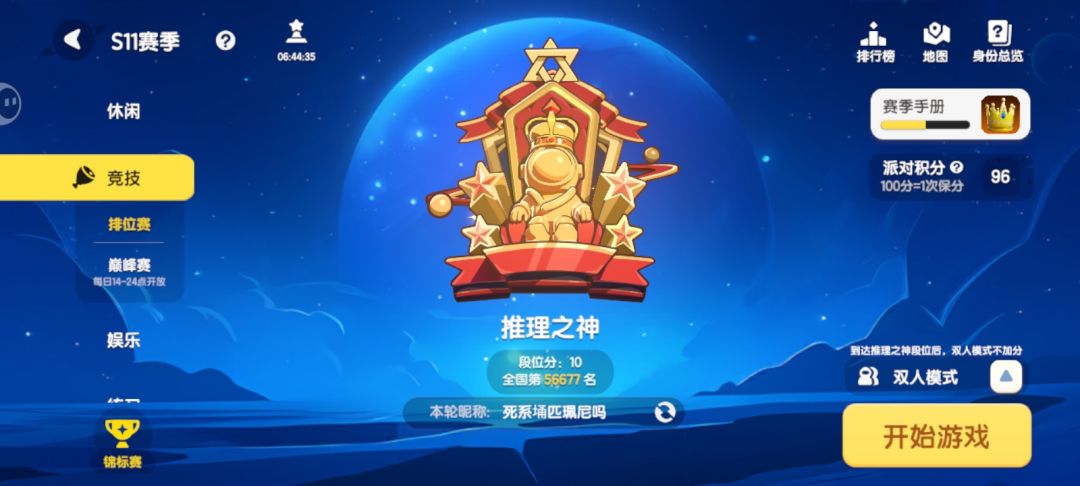 只要有时间,感觉从天梯就那回事,没什么含金量,感觉,只要有时间都可以上,用船员卡一直混就行,内鬼局尽量跟队友装一下糊涂,装不了就尽量退,一般在晚上比较好上分,白天小学生太多,之后真的很无聊