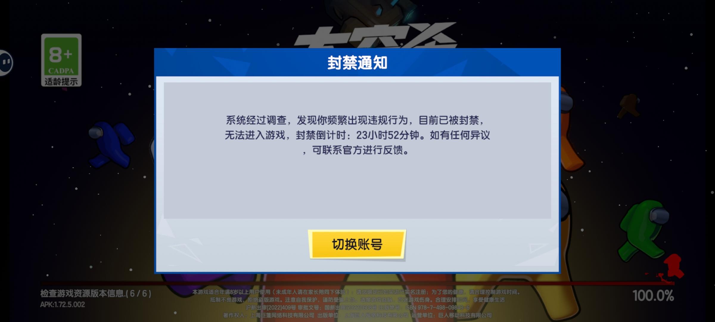 不是我干嘛啦,我刚回游,上线做个任务打了一局排位,然后给我封了?说我频繁存在违规行为?我我想问我干嘛了?我不该做任务吗,不该打排位吗?