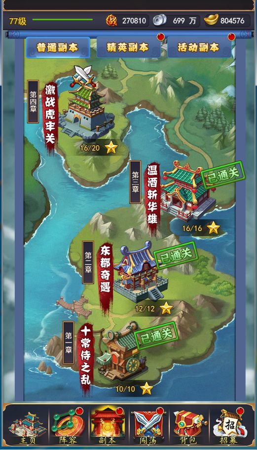 普通副本:通过可获得星星,星星满了可以获得对应的宝箱奖励精英副本:通过可获得武将碎片,和大量经验活动副本:每一个每天可以挑战3次,通关可以获取对应的副本奖励