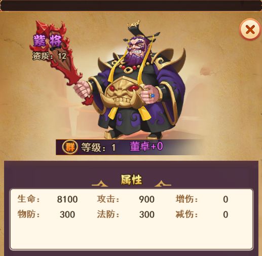字仲颖,本为西凉豪杰,保疆守土功绩卓著,对郭嘉满怀热枕,但偶然的给予,得到上古凶兽饕餮之灵,获得了极强的实力,同时也打开了他心中的欲望之门,自此变的残暴、贪婪、极端,最终走上了自取灭亡之路。技能普攻:对单个敌人造成100%伤害酒池肉林:对随机三个敌人造成150%伤害,使敌方后续受到的伤害增加20%,持续2回合。饕餮盛宴:对单个敌人造成200%伤害,并有60%概率眩晕目标1回合(董卓、华雄、