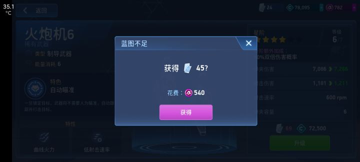 火机炮图纸1张=12A币,蓝币足够的情况下用A币代替图纸升级还是很划算的。不要用a币代替蓝币,兑换比例太坑,这游戏只要存足够的A蓝币主升一个机甲+武器就有很好的体验(建议机车+火机炮6)