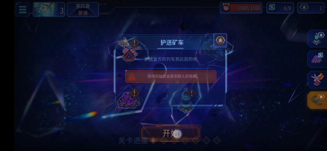 打到第四章第五关,指定关卡【护送飞船】操作界面消失,不显示地图,指令等。这一关选择其他关卡正常。
