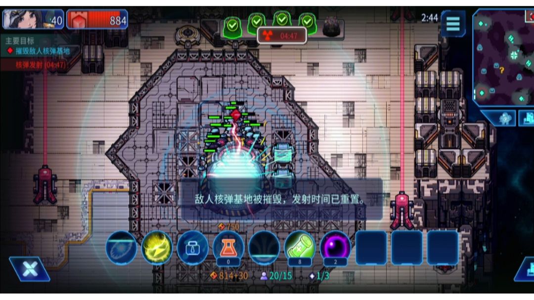 超时空妹子打前期节奏巨快,支援速度堪称逆天,基本上一眨眼就占完矿了。再加上这关可以逃课,简单得很。 不知道为啥那个无人机不能回收,估计是bug。 看看什么时候可以搞到第三章最后一关的核弹井,那一关可以体现出超时空妹子阵容的恐怖统治力。