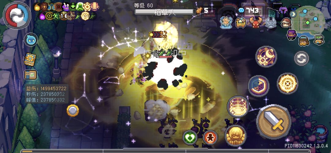 前两是为正常不开周期律令的伤害,中间的几次是开创造期周期律令的伤害,最后的几次是开湮灭期周期律令的伤害,因为我黑暗额外比闪光额外高所以湮灭期的伤害会更高最高的时候爆过16亿,后面部分是实战刷图效果。 放技能的顺序是:实界之骰-超界冲击-万有引力-奇点,万有引力带冲击之枪刷本小怪只需要放骰子接万有引力就行时不时放个超界冲击回下能量就好,打小怪不需要最高伤害到了BOSS开周期律令一套秒完事。