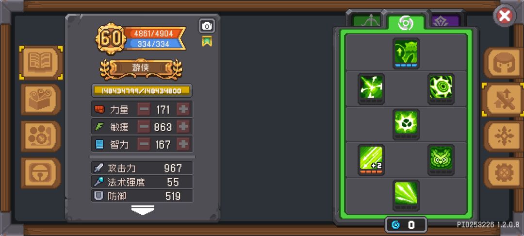 魅影,精准弹幕流 图为游侠榜一(侵必删) (仅用图,剩余内容为笔者自写) 加点1力:2敏 核心羁绊 副羁绊追求:绝对冷却,疾风聚雨(箭雨羁绊可不选),吸血,吸蓝。全力突进,重型弹药,引力新星(箭雨羁绊可不选)。这套主玩弹幕,引力和聚雨不是首选,洗到了可以用。洗出来全力突进和重型弹药,洗血这类最好 因为游侠使用弩类武器闪避突袭后可以使用正在冷却的技能这个特性被修复,所以想玩好精准弹幕游侠最好凑出扩散