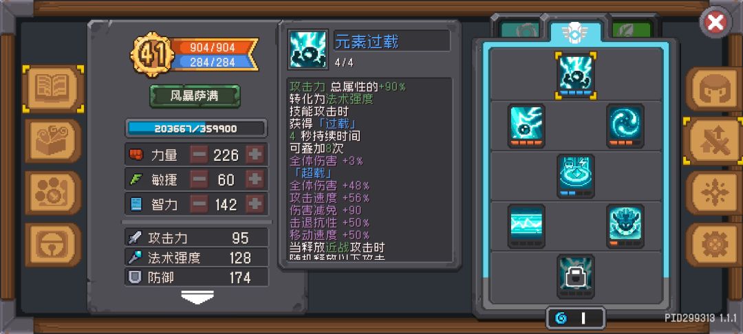 首先讲解我们的核心被动元素过载,这个被动给我们提供了很多增益,前期最好点2到3层,中期点满,期中有一个攻击力转化为法术强度的特点,所以我们前期可以3力1敏中期改为4力,然后装备推荐大巫师,装备主属性最好都为智力,这样我们就可以拥有十分高的法术强度,这一切为了一个核心输出技能过载惊雷,这个技能有十分高的加成所以我们主要叠的就是法术强度和电击伤害往后是暴击率,暴击伤害 ,全体伤害,冷却缩减等,为了达到
