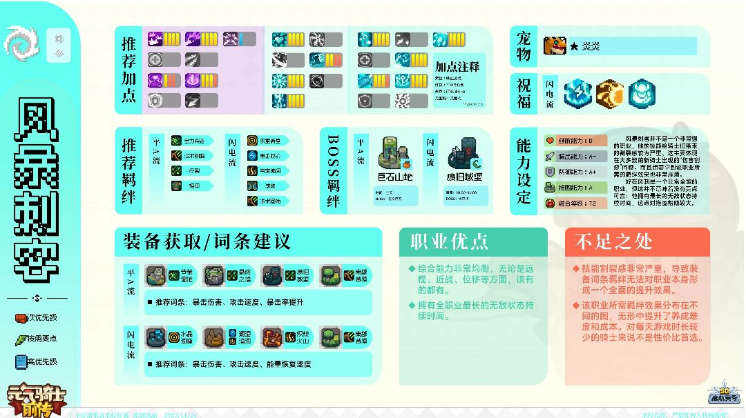 差不多就这样吧,如果凉屋不恶心人就考虑考虑写个攻略,黑煞心到现在都没刷到一个!优化太差了,联机我一开技能卡得不行还丢伤害,只能自己刷 (其实打桩也就图一乐,关键这个流派不像旋风,流血内置冷却轻松吃满) 具体可以先看这个: 【【元气骑士前传】:快速打击流领主干货攻略!装备羁绊,技能加点,祝福选择。-哔哩哔哩】
