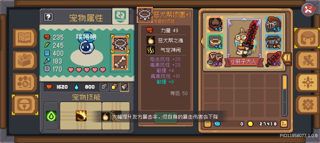 之前以为这个是特性,发了个攻略,结果发现好多人根本没这个效果,发现是bug,被官方无意中修了。 ps:官方修了一次了不能爬塔用了,再传开被官方修一次估计就彻底无效了。 不过官方没修完,研究一晚上找到再次触发的方法了。 利用这个能让宠物获得恶犬帮三件套效果。大幅度增加暴击率。 还有特殊用法,刷个绝对专注+法袍2+2的配饰,宠物带技能重置和金币翻倍,就能无冷却把全部金币翻倍。 下面是教程: 1.点击宠