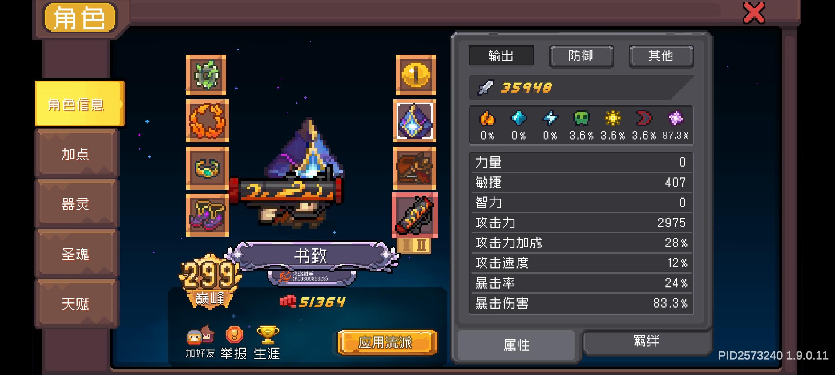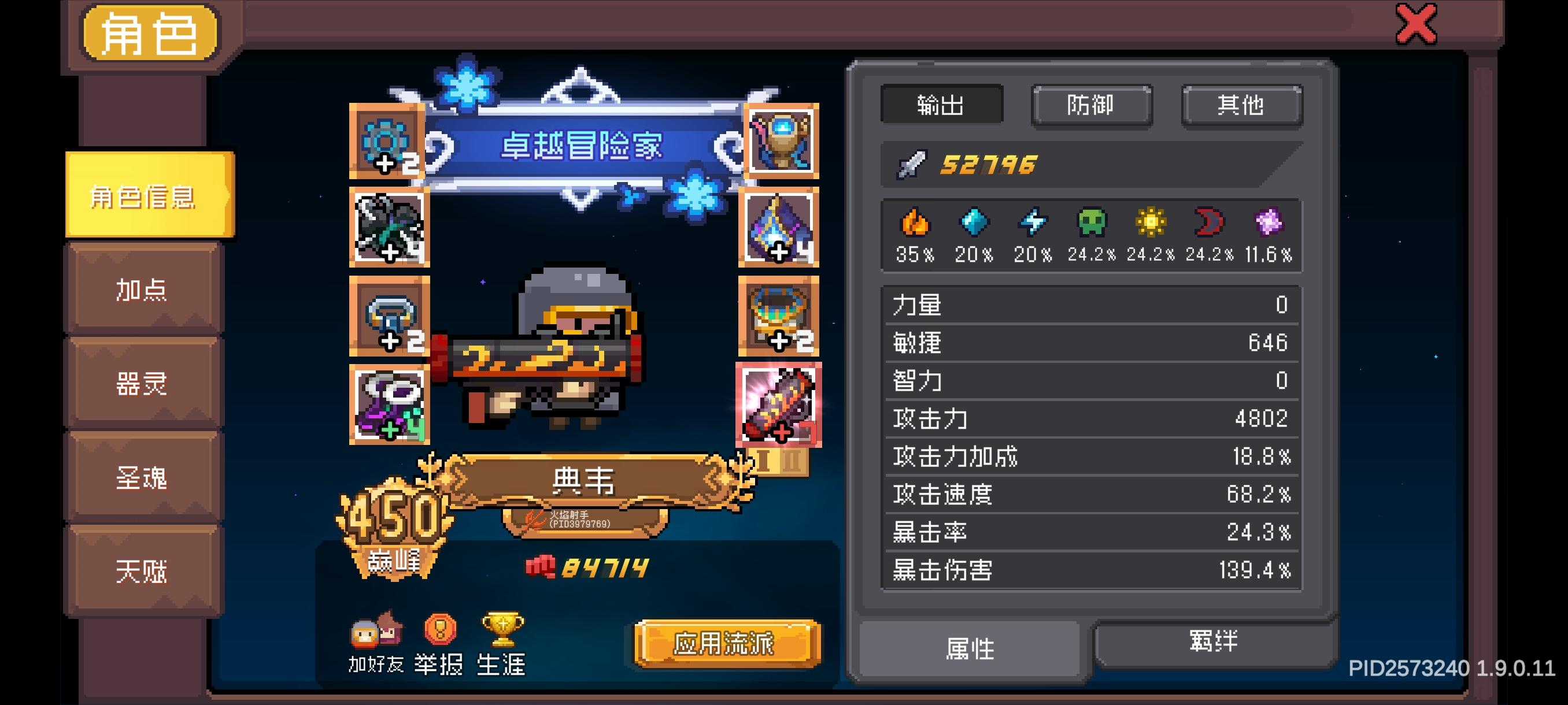 “啊煮波煮波,蛐蛐万亿也敢发出来丢脸是吧?”“呜呜呜别骂了别骂了”---今天下午没课,小小肝了一下,调了一下装备,敲了一下重铸,浅浅试了一下,dps终于上万亿啦,开心!面板属性虽然不是很好看,但是装备也没齐,资源虽然不多,但是重铸也敲不出有用的词条,刷关虽然经常暴毙,但是太古装备也掉不出来,总上所述,这游戏实在是太好玩啦!我们游戏今天也在蒸蒸日上呢!希望游戏能保持好现状,凉屋有大弟之姿!
