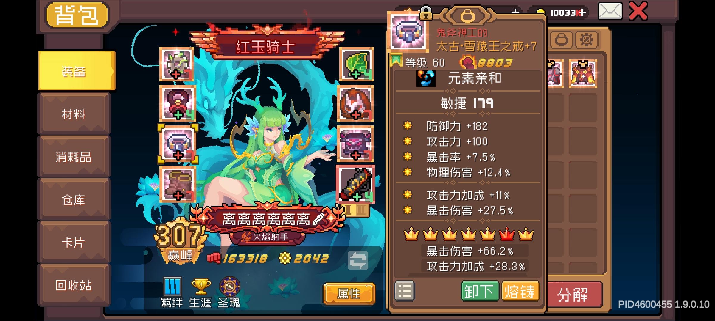 “啊煮波煮波,蛐蛐万亿也敢发出来丢脸是吧?”“呜呜呜别骂了别骂了”---今天下午没课,小小肝了一下,调了一下装备,敲了一下重铸,浅浅试了一下,dps终于上万亿啦,开心!面板属性虽然不是很好看,但是装备也没齐,资源虽然不多,但是重铸也敲不出有用的词条,刷关虽然经常暴毙,但是太古装备也掉不出来,总上所述,这游戏实在是太好玩啦!我们游戏今天也在蒸蒸日上呢!希望游戏能保持好现状,凉屋有大弟之姿!
