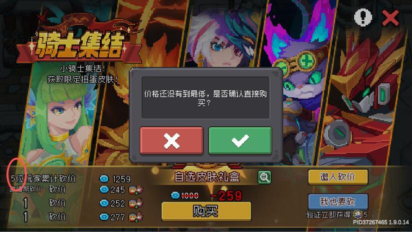 这赛季第一次见,5刀没有满13005小号砍了1259,这赛季也是第一次见告知新手:一个账号只能砍一刀,自己建小号就可以,1级小号就可以给大号助力,同一个手机号可以在不同的渠道都建立一个全新的账号,然后帮大号砍助力,求人不如求己,一个账号只能助力一次,如果你自己都不肯建小号,帮自己大号助力,那别人更不可能花额外的时间去建立新的账号来帮你助力#元气骑士前传