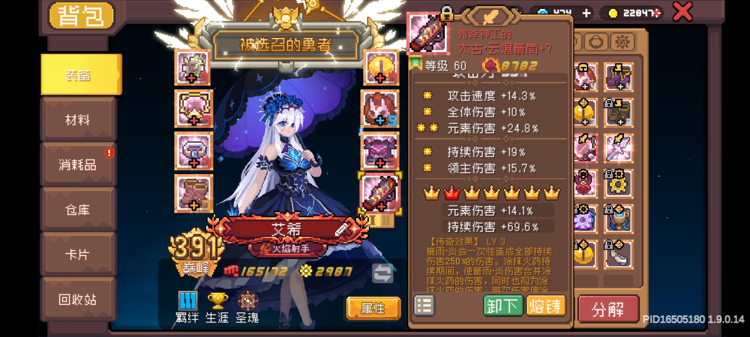 首先,这不是一篇攻略。这篇文章并不会教你如何配装选词条。我的配装和面板都在图里了,就是这套打过的1000层,想抄也随便,但我的很多选择不是最优,是有什么用什么的无奈之举。接下来正式开始,由于我是个犟种,不听劝,而且不喜欢看太多攻略,游戏靠自己摸索,由此走了不少弯路,这是我写这篇心得主要想说的。1:见到好装备一定要先锁上,不要分解。你可能暂时用不上,但最好备着。这条心得的来源,是被我分解的远古