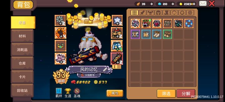 霜痕流派最主要的就是提诺斯之灵,它可以让我们的投掷物“解析”敌人,并且器灵被动技能提供“伤害总增”是我最爱的器灵啦,没有也可以用阿尔忒弥斯之灵,加20%暴击率辅助器灵用白月阿尔忒弥斯之灵,它可以减少我们分裂羁绊所减少的伤害,变相增加了伤害防御器灵就用现在新年活动出的熬骧之灵就好啦,基本人人都有捏,一星的也可以用呦我的一身大毕业装备如图,目前我个人认为没有改动的空间,都是最顶级的装备和锻造词条