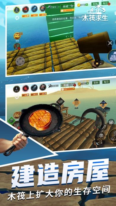 木筏求生是一款以真实模拟场景还原海难后独自在海上求生的沙盒养成游戏。游戏开局只有一艘小船,制作物品的材料全靠打捞,可以收集漂浮的木板、树叶、塑料等材料,扩建你的小船,通过船帆控制方向,种植蔬菜获得新鲜的食物,探索小岛和海底世界,同时对付不断骚扰你的鲨鱼,现在做好准备,真正的求生即将开始!