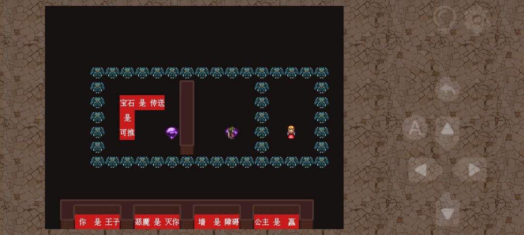 第80关 省流(先一直向右,传送后,把宝石推到公主左 边,点A动,右,A动,右) 1、按图1所示,向右走,把宝石顶墙上就会传送。 2、按图2与3所示,继续向右推【宝石】,直到【公主】左边。 3、按图4所示,此时【恶魔】与【宝石】重叠,点击A动,交换位置 4、按图5、6、7所示,先向右一步,此时【公主】与【恶魔】会交换位置,再点击A动交换回来,再向右走即可触碰【公主】过关