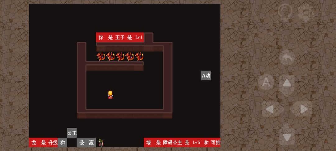 第67关 按图1所示摆放文字,然后吃掉4只【龙】升至Lv5后,按图2所示推动文字组成“龙是升级和公主是赢”,把【公主】壁咚到墙上即可过关