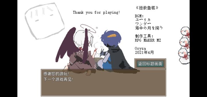 通关了,人物和鱼糕画的都特别可爱,就显示我玩了一分钟就通关了,很简单虽然我死了好几次⑉꒦ິ^꒦ິ⑉