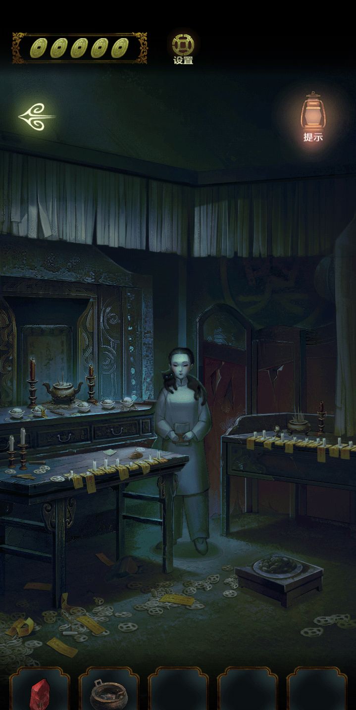玩到第几章更到第几章,不涉及剧情,只涉及解谜,有缺漏欢迎评论补充ps:有事不能一下全通关,玩到哪儿更到哪儿,进度可能会稍慢,边玩边记录,写得比较随便,通关后会再修改详细第一章奶奶房间:火柴(点厨房的灯和灶火),灶神像(浆糊粘起来)庭院:木头(生火)厨房:葫芦瓢(庭院的水缸装水),碗(装面),书(提示灶神处需要的东西),线香,煤油灯(用火柴点燃),柜子抽屉(密码顺序在庭院水缸,点燃灯看黑色