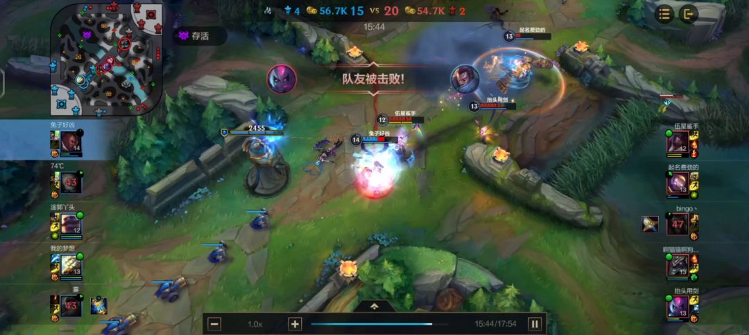 前期下路被按着打,看着都可怜,我方射手1杠4,辅助0杠5[捂脸],但都安安静静玩游戏。[机智]