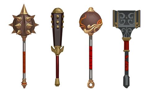 “我看你像个棒槌” “诶!你怎么骂人呢” “不是,我是说TA” 这一堆棒槌。。。 有时候看到一件武器,就会联想到使用这把武器之人的形象和特征。貌似每个门派或是种族也都会一个统一的特征,像boss或是怪物统一的特性是都丑!(不是) 开玩笑啦~这么多年影视剧中,人美心不善的反派还少吗? 除了上面武器的“棒槌”设计,设计大大不知道是受了什么灵感激发(刺激),还设计了2个拿“棒槌”的boss...... “