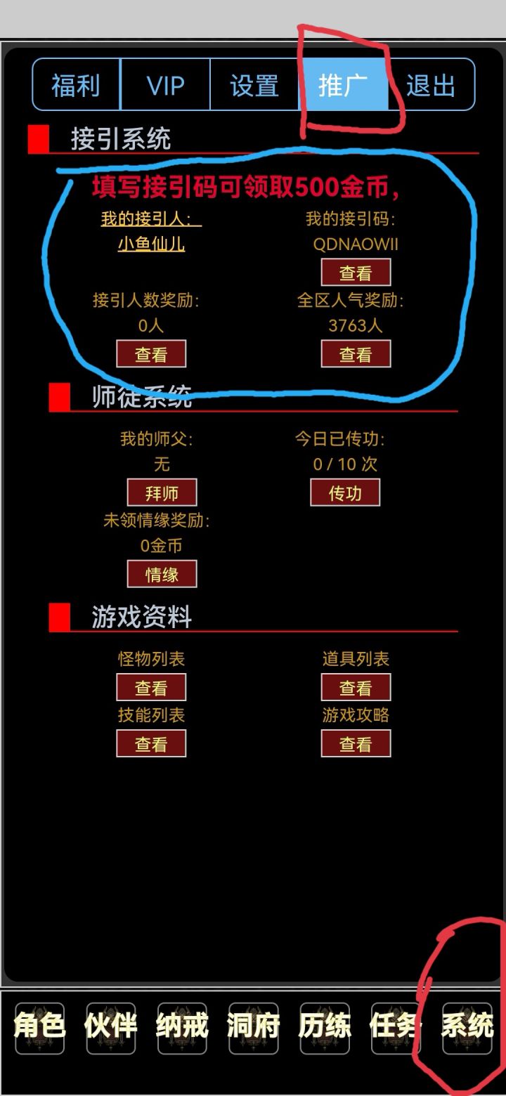 2区引荐码CBTUUQTK,系统——推广——引荐人,填一下可以拿500金币