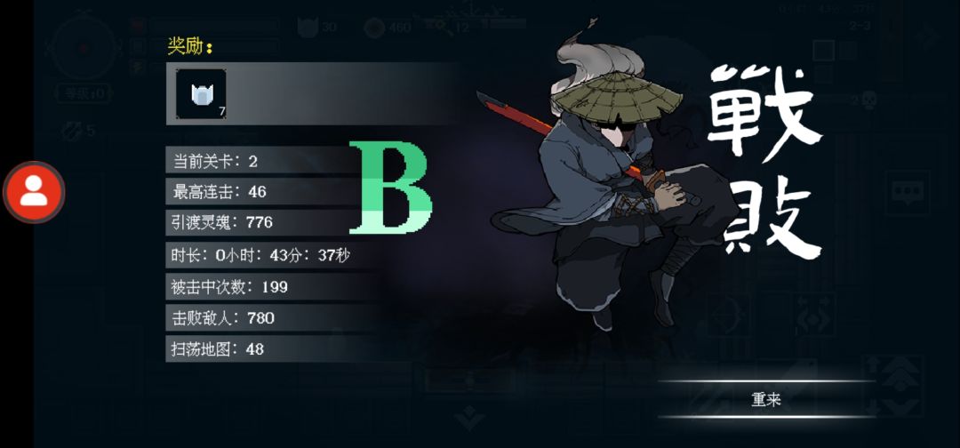 手残党打起来好废时间。。。总结一下心得 1.注意每次存魂都会治疗满状态一次,打到后面建议每关都回去存一次魂 2.“有几率”的被动的装备别拿了,因为你真的不知道这个几率大有多小😠😠吸血刃还行,那个雷击的我都没触发过😭😭😭 3.出装拿辅助自身伤害的比较好,想什么黑魂白魂攻击的就是废品,大剑和环绕剑永远的神! 4.多钓鱼攒点银子,钓鱼条大概到三分之一的位置拉钩是百分百钓到鱼的,打到后面完全可以花银子一个商店配六神装,银子可以换钱和刷新商店,买酒菜也很香