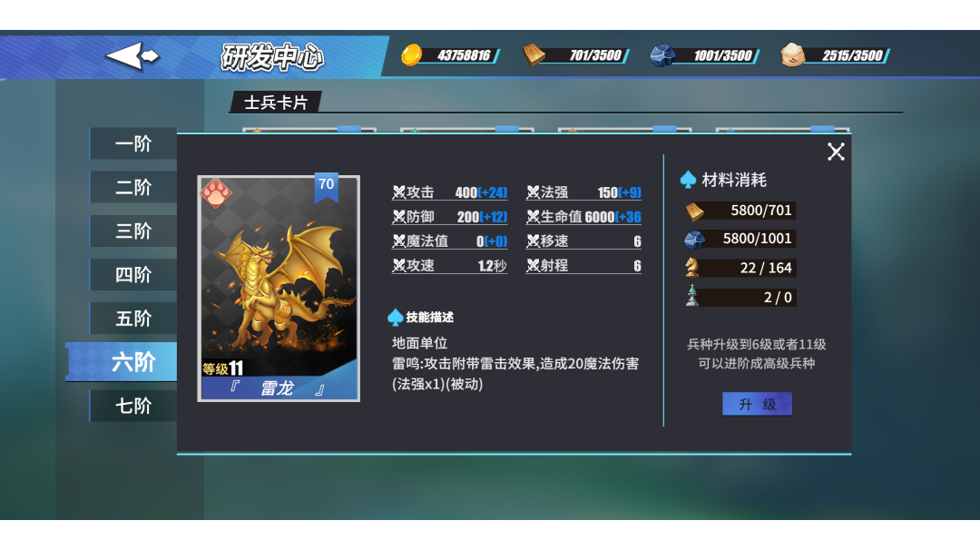 第三关的难度就需要六阶兵种十一级了,难度有点高啊