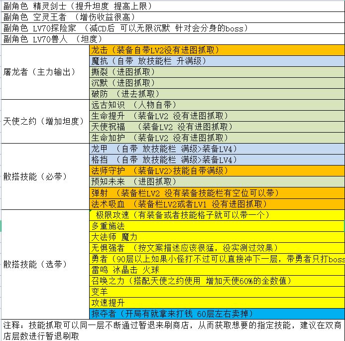 首先,这个攻略面相的是40级左右的玩家,70级玩家可以随便打噩梦幻境女王打幻境技能自带,装备技能抉择,进图技能抓取一栏表如下另注:1.我认为天使之约不是必须抓取的,但我问了很多30-40级的他们都说要带,不带会死。我不是很懂40级玩家的世界,因此还是写着带上了。2. 为什么去不做战法和光速剑羁绊?战法羁绊是攻击力加成,攻击力都是纸,后期怪物抗性很高,打不动,反而浪费珍贵的技能格位。光速