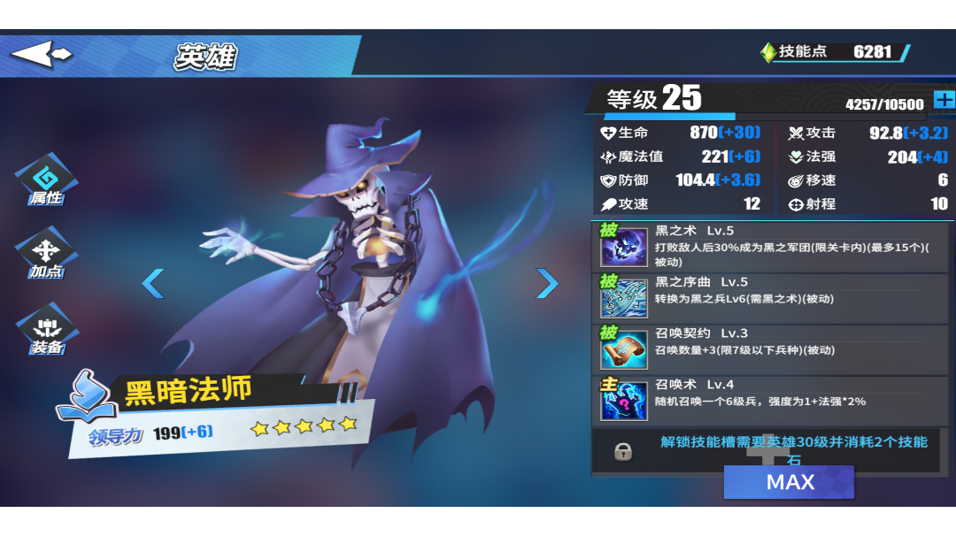 第二天玩,自己摸索的一套法术魅魔技能。没带小兵,也没点小兵技能,提升战力主要靠用变羊刷镜像,技能成型后刷雕像和镜像就可以,装备主要是宝物,要装龙牙有龙息范围伤害,其他的可以看自己需要,技能主要点出战法和大法师加100法强和80%法强的攻击力,核心技能是法术吸血,然后就是叠法强的技能。火法也许更合适,用魅魔主要是想点出七十级技能。