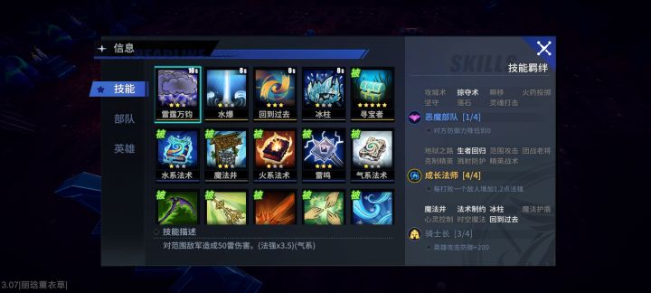 装备,技能,兵种,如图所示,黑龙9-2刷的,天使10-6刷的,紫水晶除了买个先古,幻境,基本都被用来抽技能了。优先黑龙满级,然后法术吸血,弹射可以通过普通和困难两种模式获取二级弹射。后面天使就扛不住了,都是天使拉去吸引火力,自己快速刷技能,局内技能搭配天使之约,屠龙者,以弱胜强,大法师(可凑羁绊,也可以不凑),剩下的技能格子,冰晶击/雷罚/火球攻击(三选一或二),变羊。思路就是黑龙三级免魔伤