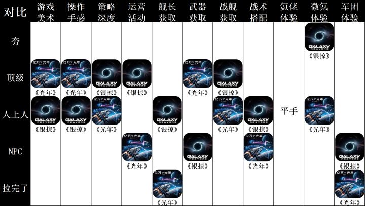 最近忙到飞起!加班到九点下班,回家处理玩家群问题、统筹圣鸣人员、抽空优化攻略,间隙还要肝亿万光年、银河掠夺者、崩坏星穹铁道、终末地…… 忙是忙,但痛并快乐着! 相信各位牢玩家对《银河掠夺者》都不陌生,本期不做干货攻略,做一期接近九年的情怀杂谈,简单对比亿万光年与银河掠夺者两款同类竞品的游戏。 游戏评论中一直有 “换皮游戏” 的说法,二者相似度确实极高,本期我们就聊聊两款游戏的前世今生,同时客观