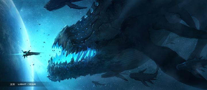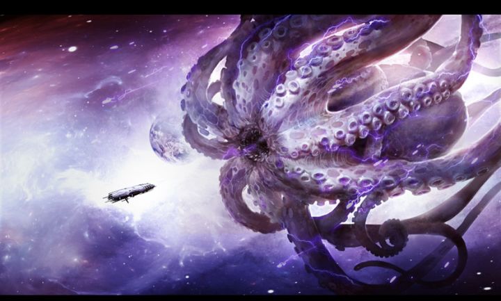 最近在忙融资,精力散了很多,所以这张游戏概念图很不理想,章鱼太普通了,没有我要的很多眼睛,连吞噬星球的氛围也没做到……打回重画