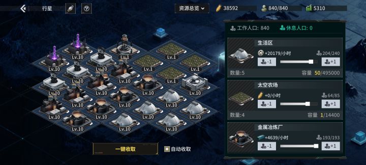 #亿万光年 #亿万光年手游 四个田能最大化空出来人口生产别的,内个升级武器的可以换成升级舰船的,但是都是毛毛雨,大头还是体力,源质,钢材,金币,科研这些。