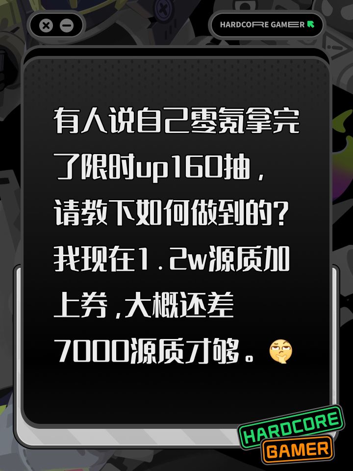 有人说自己零氪拿完了限时up160抽,请教下如何做到的?我现在1.2w源质加上券,大概还差7000源质才够。