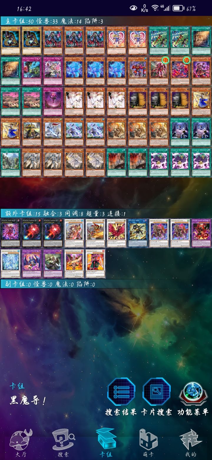 这是在学校呆了一个月,带的卡组玩腻了(一直是同样的几套打来打去)然后闲着无聊组出来的,打了几把,出乎预料的能玩,甚至非常好玩(bushi)回家之后就在YGO上组出来了,也试了几把,能玩,过两天在md上试试。就是分享一下,也希望能得到一些看法·评价