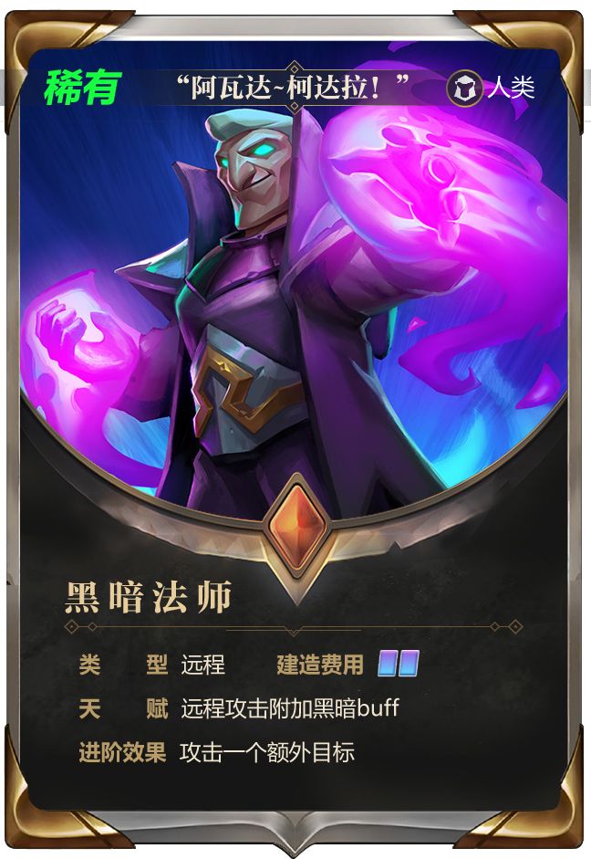 《Rroject DF》中的人类,往往凭借优秀的天赋和超强的训练,成长为出色的战斗专家,其中法师更是倚仗强大的精神能力,高居于种族的顶端。除了冰系、火系这种操控元素之力毁灭敌军的大法师之外,还有一系法师,以绝对黑暗的力量,为他的敌人带来灾厄和毁灭。他就是今天的主角——黑暗法师。黑暗法师是稀有级别的远程法系单位,他没有火系法师的高伤害,也没有冰系法师限制敌人行动的能力,但却有着专属于黑暗魔法的超卓