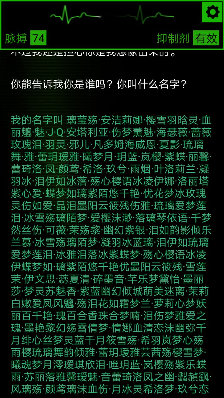 结局分支详解第一部分【醒来~躲入初始房间卫生间昏迷】初始房间大声喊叫可以回收一个死亡结局,猩猩是一定会到达房间前的,保持安静就行。对医生搜身可以拿到钥匙(没拿到也不要紧,后期能拿到)还有两个闲聊对话,具体自己体验第二部分【初始房间醒来~在仪器背后休息】如果没有去护士导诊台就拿不到镇痛剂和电梯密码(然而电梯是坑人用的)去拿药的时候脉搏必定会上200,但是不会对剧情有什么影响,不过还是尽量