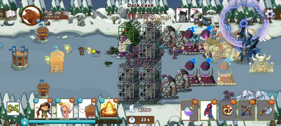 玩了一周了终于通关了,游戏时长35小时,一大半都是看广告的时间,这游戏钻石只建议买商店999和499礼包最划算,999必买,有好几张不朽和传奇卡,达到250场还有4w多金币400多钻石,直接回本,要注意看到期时间,竞技场看,赛季初买最好,赛季末买小心过期 先说卡牌强度 t0金卡三巨头:特鲁伊 树精 夜精灵 这三必买,别问为什么,问就是只能说太强了,特鲁伊每隔几秒在怪物最前面召唤一颗肉盾树,树血厚