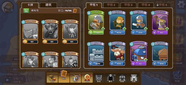 这游戏前期1-1到2-5之前用系统给的怪物卡牌就能轻松过图,2-5是一个转折点,难度会突然提升,这个时候就需要去升级卡牌再去商店购买卡牌和项目道具了顺带一提,这游戏所有卡牌,主建筑,项目道具都能通过相同的卡牌道具进行升级,升级会消耗一定的金币,升级后卡牌和道具会变得更加强大,所有卡牌和道具最高可升级至13级,这游戏商店每天会随机刷新一个免费的卡牌和一些金币购买的卡牌,其中有很多好用的卡牌和